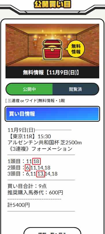 正直、たまたまかと思ってたけど…3週連続で重賞的中してるの見て驚いた。 しかも私は2週目とアル共、合計で12万円近くプラス!これは無料のレベルじゃない。