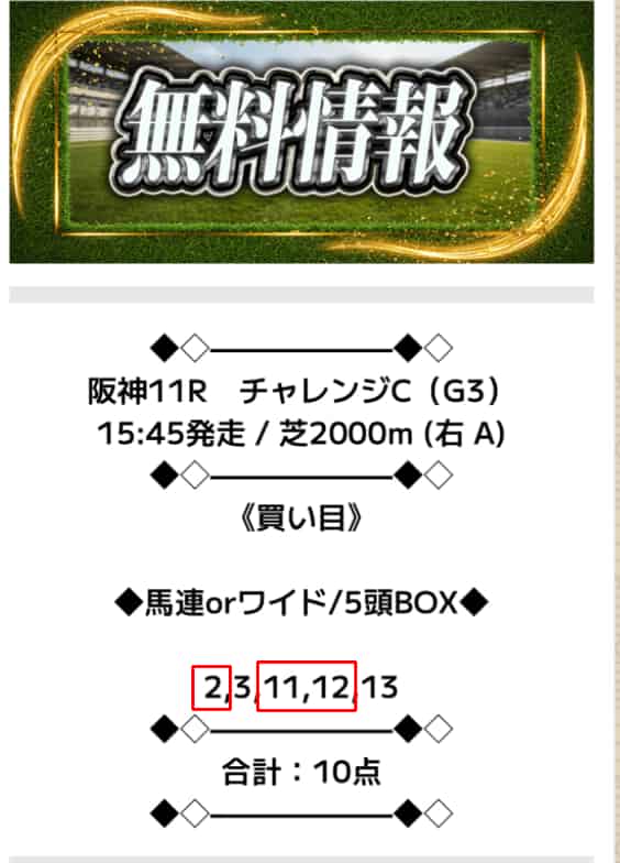 買い目見た時に「これ当たれば熱いな」と思ったけど、 本当に当たってて驚きました。 しかも情報料ゼロって…控えめに言って破格です。 こうなると、やっぱり有料情報も気になってきますよね。 次はもう少し賭け額上げてみようか悩んでます(笑)