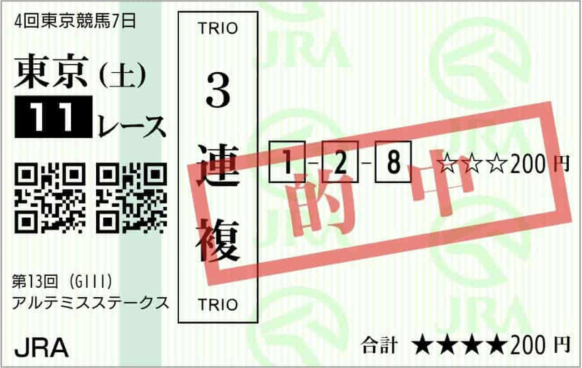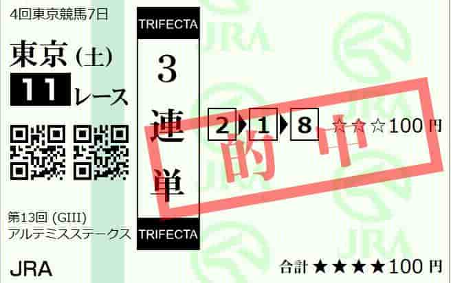 的中実績04/26日(日) 京都08R 4歳以上1勝クラス