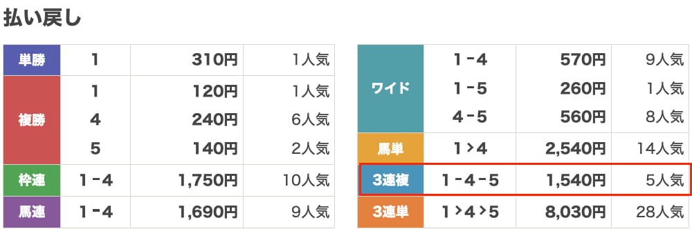 払い戻し1,540円