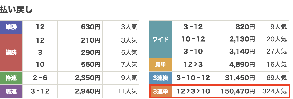 3連単の的中でまさかの105,850円!