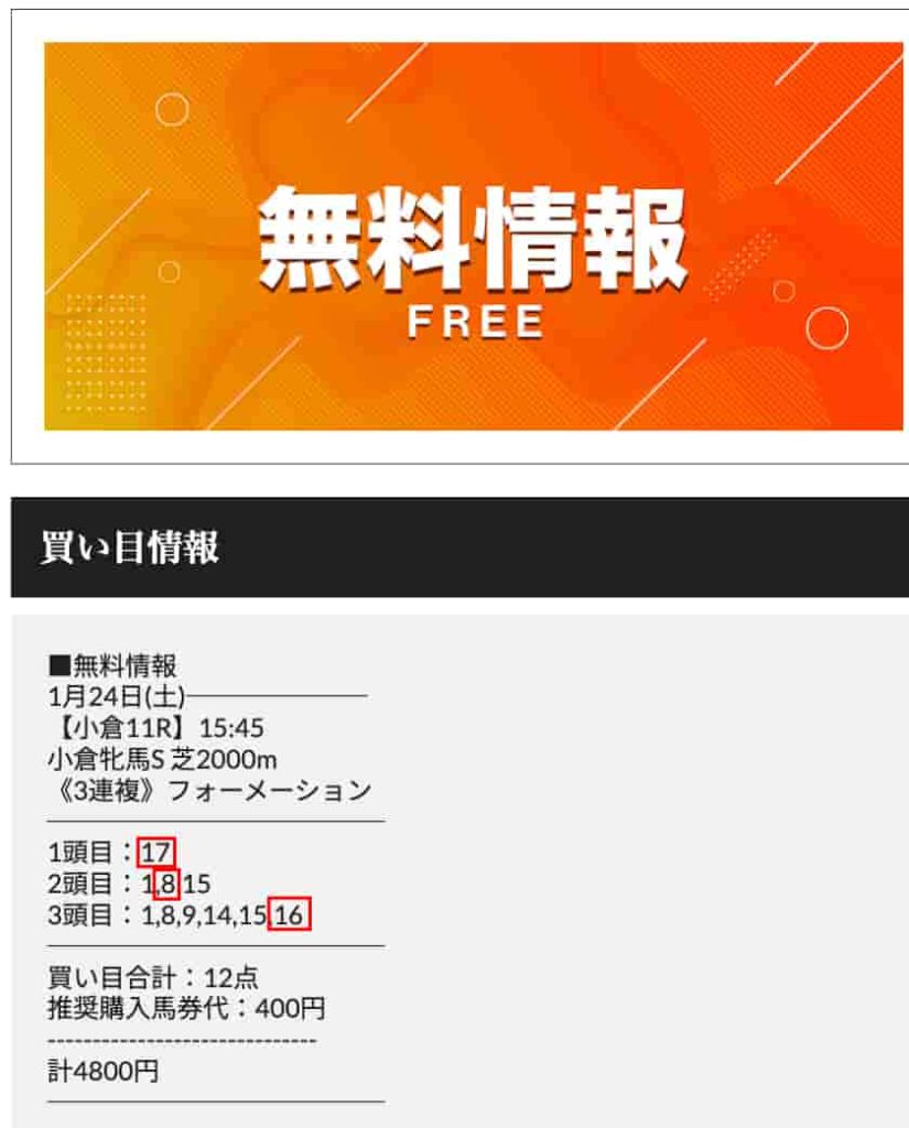 01/24日(土)小倉11R