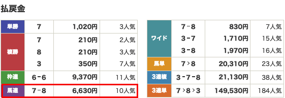 | 払い戻し | 6,630円 |