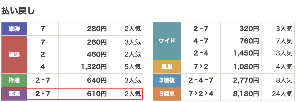 | 券種 | 馬連 |