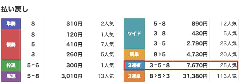 | 券種 | 3連複 |