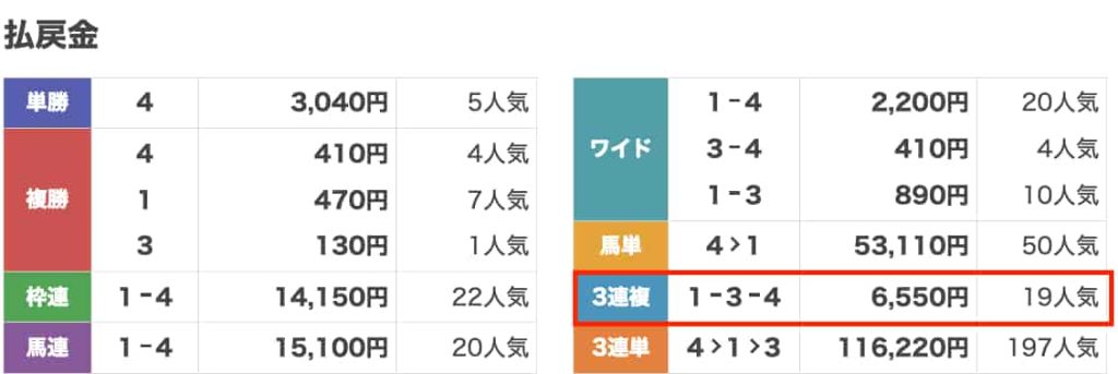 | 払い戻し | 6,550円 |