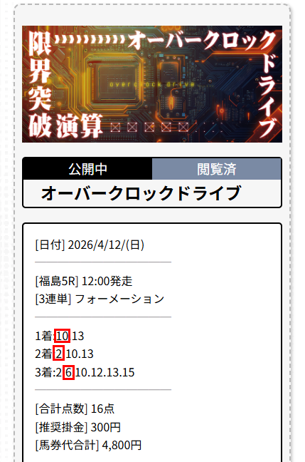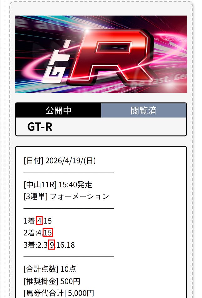 土曜にサクッと当たって最高!自分じゃ絶対買えないような人気薄をバシバシ買い目に入れてくるから、最初はビビったけど結果を見て納得。他のサイトじゃ見逃すような馬を拾うセンス、マジで凄すぎます!