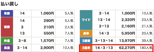 | 払い戻し | 62,270円 |