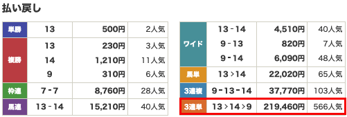 | 券種 | 3連複 |