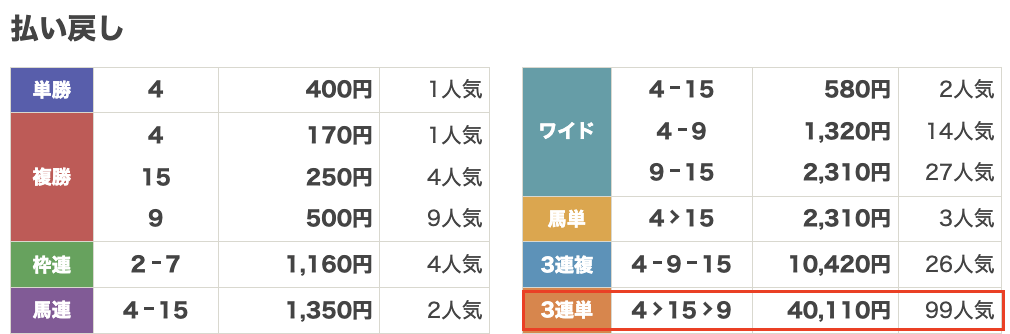 | 馬券代 | 4,800円 |