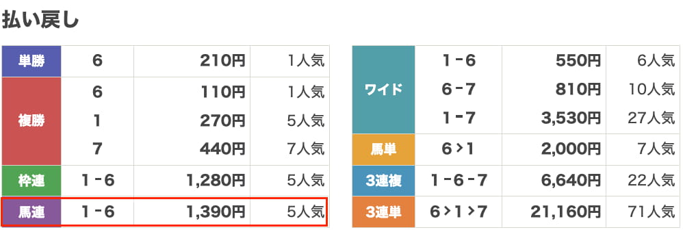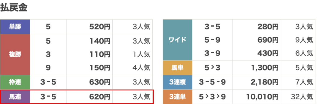 | 券種 | 馬連 |