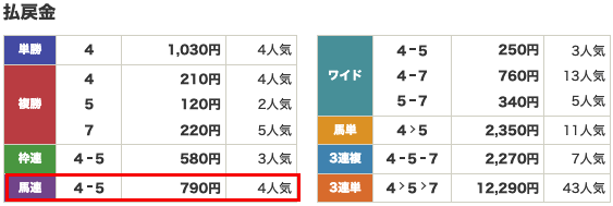 | 払い戻し | 790円 |