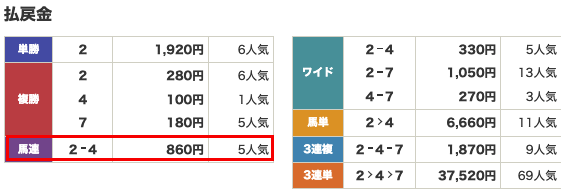 | 払い戻し | 860円 |