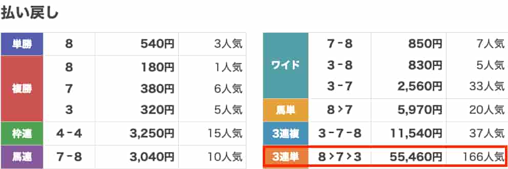 中山8Rで的中! 三連単で買ってて良かった笑 ほんと、ありがとうございます!