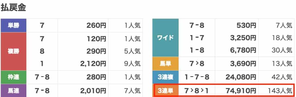 無料なのにワイドでしっかり当たって+1万円プラス。これは続けたくなる。