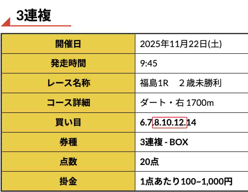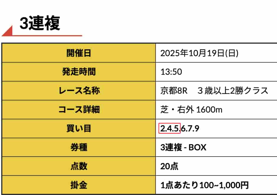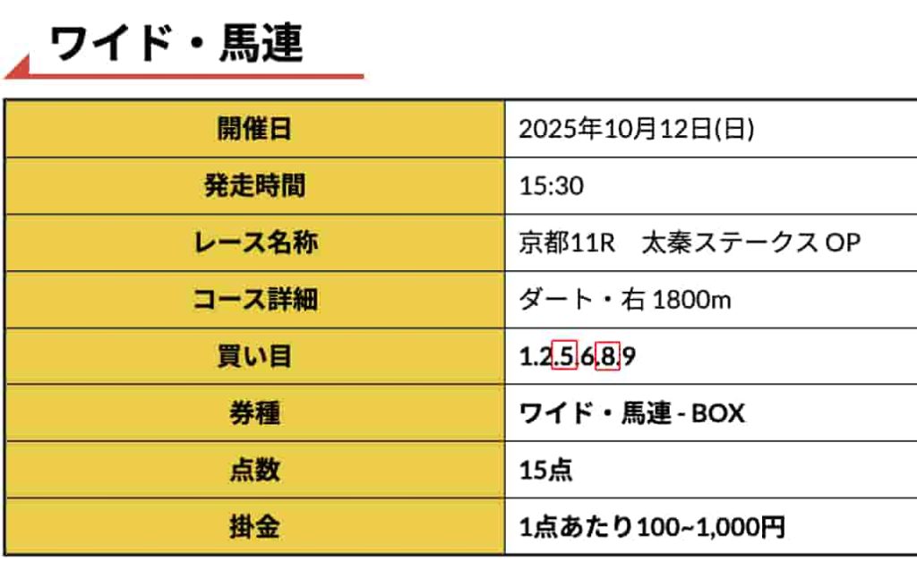 | 馬券代 | 1点500円✖️10点=5,000円 |