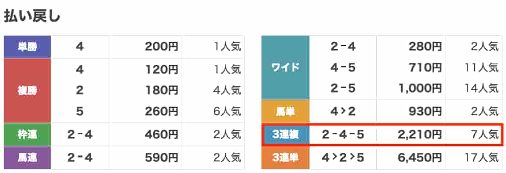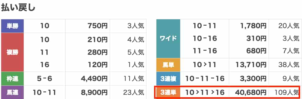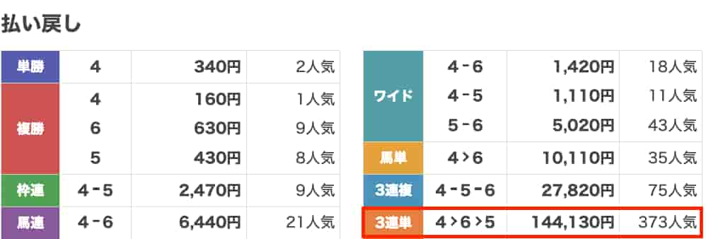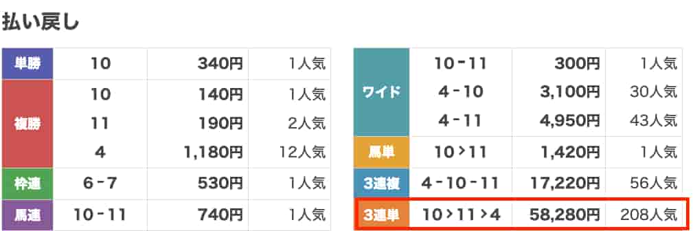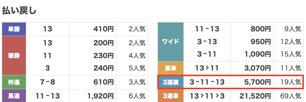中山4Rで「馬連」と「3連複」の両方が的中。