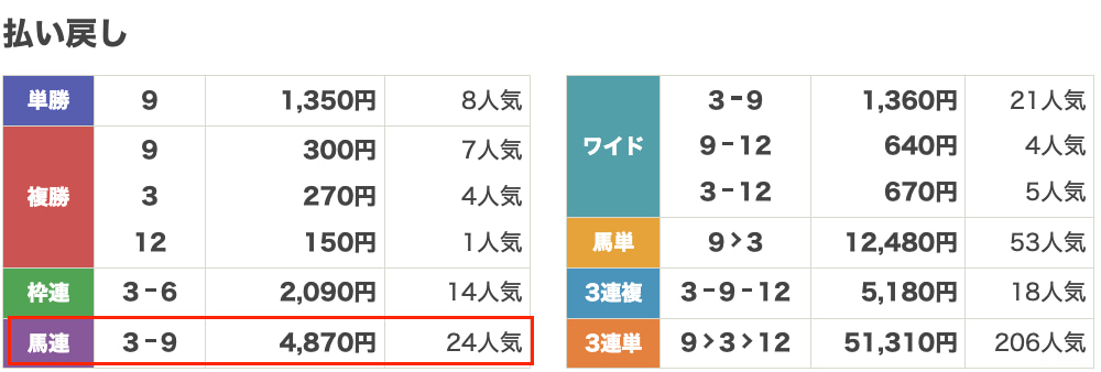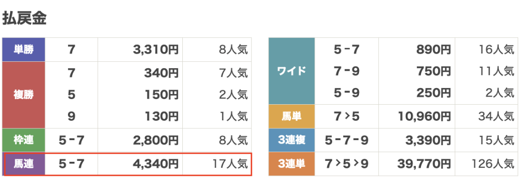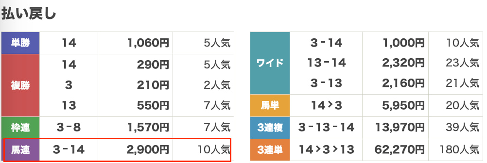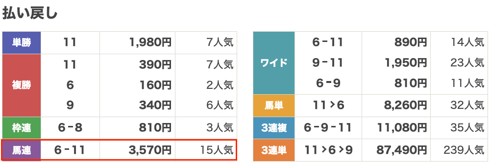 | 券種 | 馬連 |