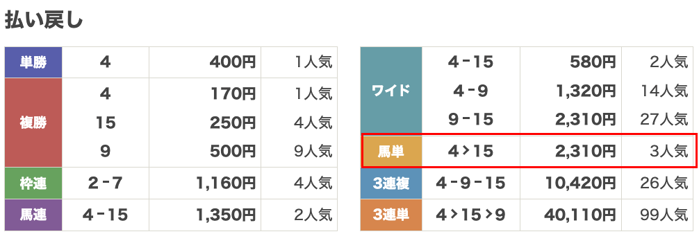 | 払い戻し | 2,310円 |