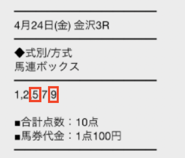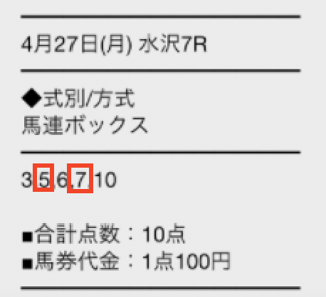 素人判断じゃ買えない組み合わせ。結果5-7で4.3倍を仕留める精度の高さに驚いた。これなら週末も期待できる。