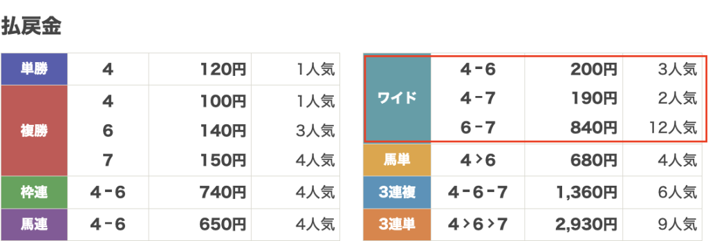 | 券種 | ワイド |