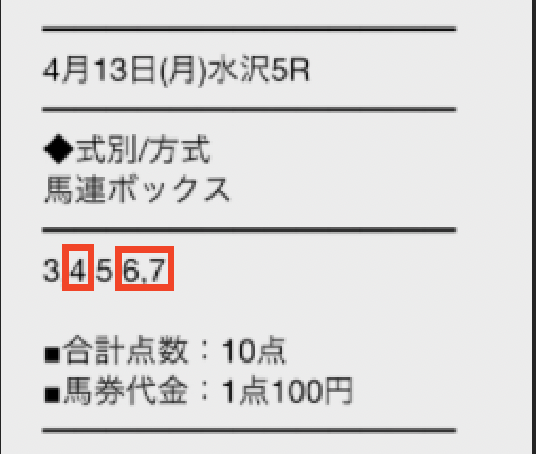 | 馬券代(1点600円✖️6点) | 3,600円 |