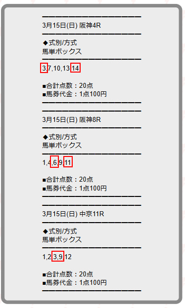 03月15日(日)阪神4R・阪神8R・中京11R