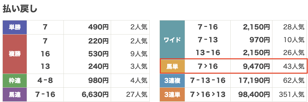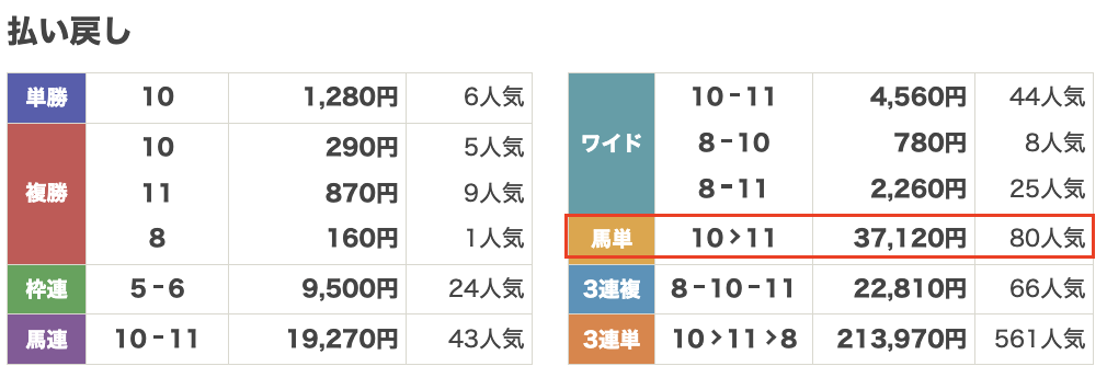 | 券種 | 馬単 |