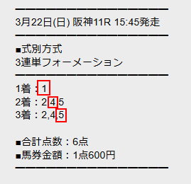 | 対象レース | 阪神11R |