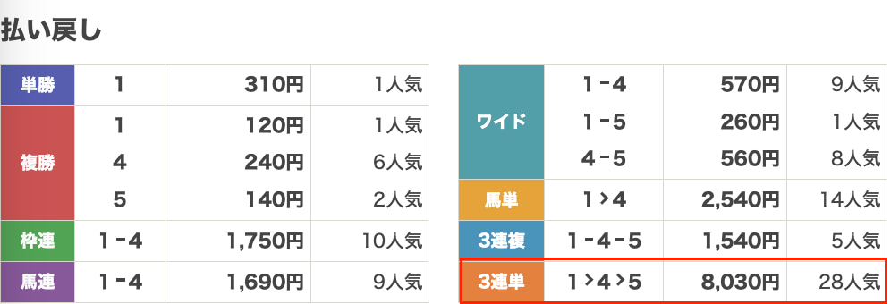 | 払い戻し | 8,030円 |