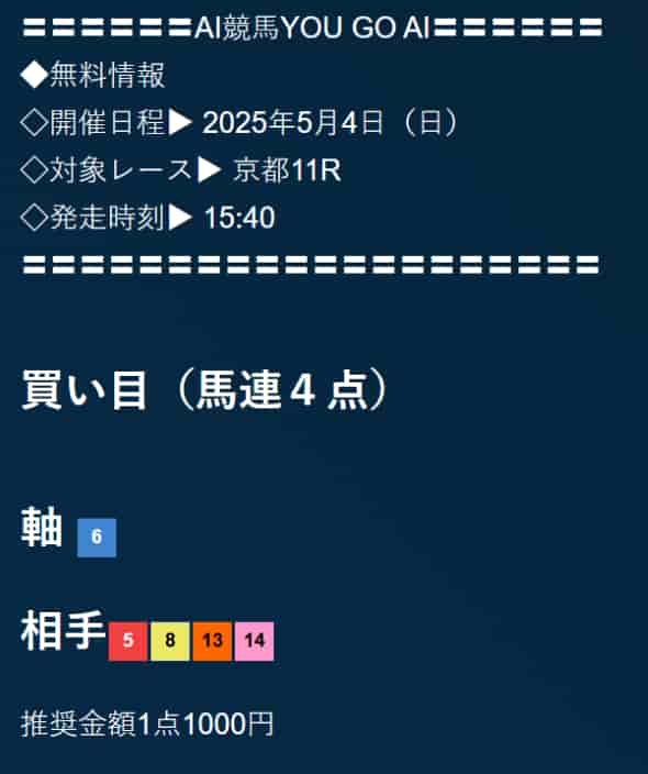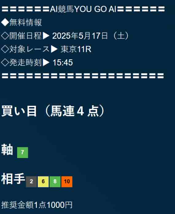 最初は半信半疑でしたが、無料予想でしっかり的中。大金とはいかないまでも、十分すぎるスタートに驚きました。AIの精度、あなどれないです。